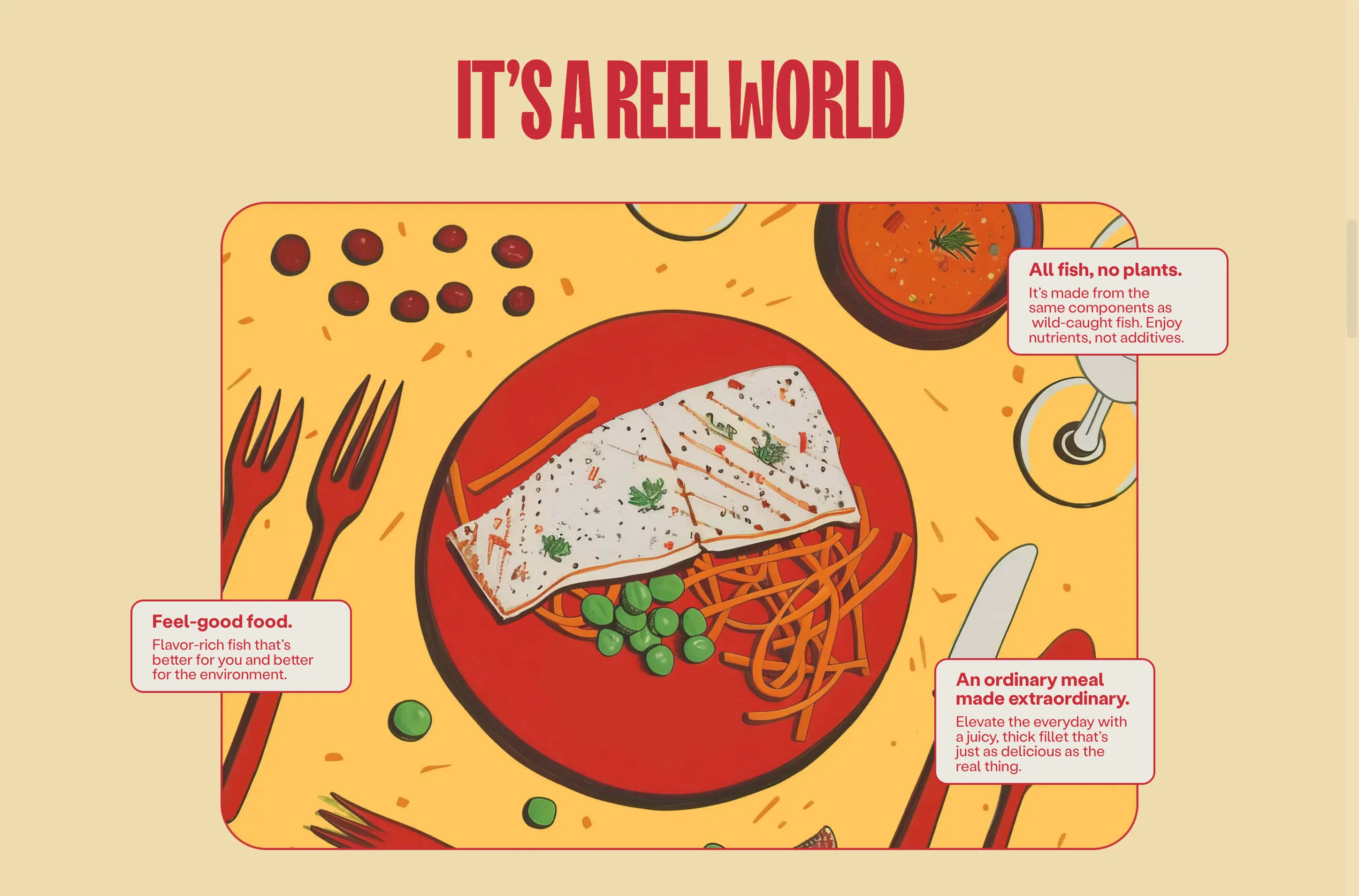 I wrote the copy for a pair of landing pages for Reel, a biotechnology startup developing cultivated seafood. For the consumer-facing page, our goal was to introduce Reel’s fish to a broader audience while highlighting its environmental and health benefits. The investor-facing page focused on Reel’s technology differentiators and how this specialized process is ready for investor partners.