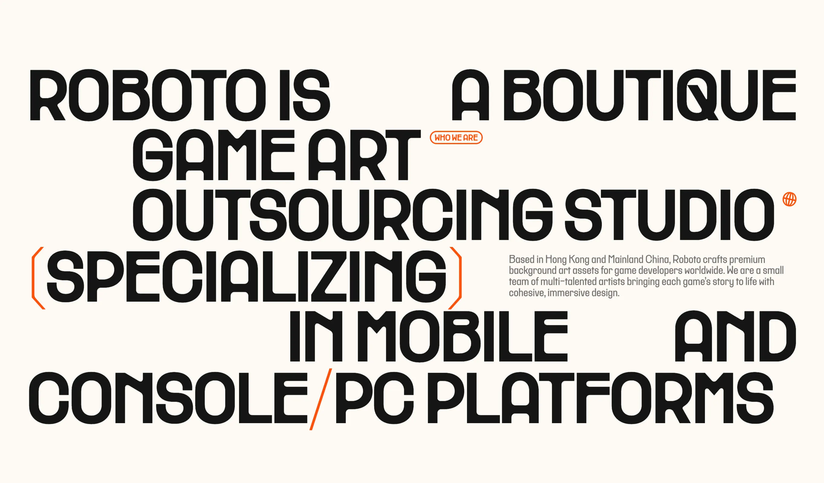 I composed the website copy for the redesign of Roboto Entertainment, a Hong Kong-based video game art outsourcing company. With a new visual identity, Roboto also wanted to position itself as a well-seasoned player in the game industry and highlight its depth of services.